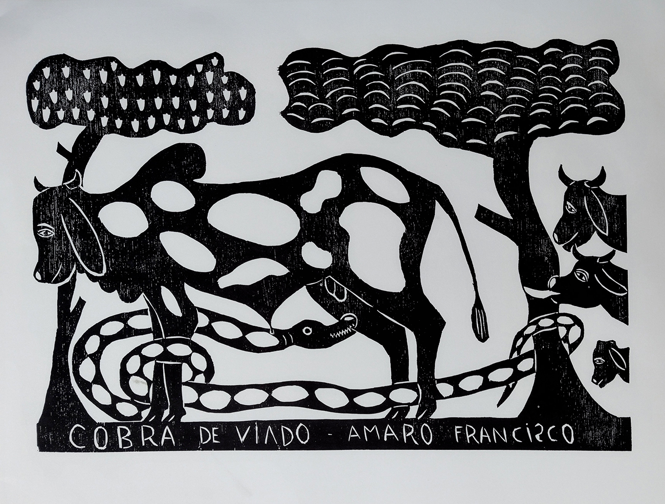 Gravura original, xilogravura titulada "Cobra de Viado" assinada na chapa por Francisco Amaro, sem moldura.